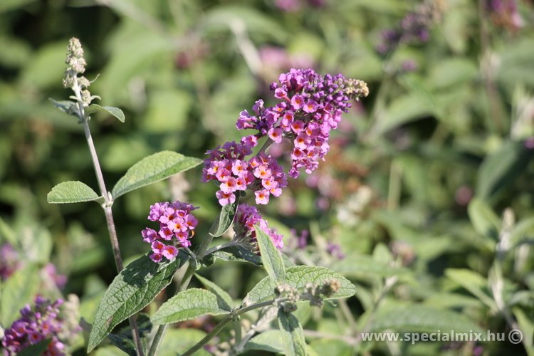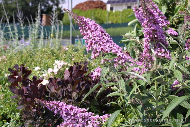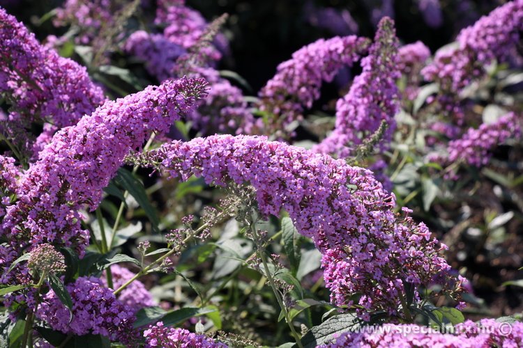 1 m magas, vékony hajtású, széles bokrú cserje. Élénk liláspiros, 15 cm-es bugáit június végétől folyamatosan hozza. Előkertbe, cserjecsoportok elé ültethető alacsony bokor. Tápanyagban gazdag, jó vízellátású talajban díszlik szépen. Tavasszal vágjuk vissza.