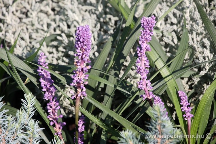 30–40 cm magas, örökzöld évelő, melynek levele a fűfélékhez hasonló. Rizómáival lassan terjed, de idővel nagy foltot alkot. Nyár végén (augusztus-szeptemberben) virágzik: apró, élénk lila virágokból álló füzérei az ívesen széthajló levelek fölé emelkednek. Félárnyékos/árnyékos virágágyások talajtakaró növénye. Mérsékelt vízigényű, az átmeneti szárazságot is jól tűrő, tágtűrésű faj. Kevés gondozást igényel.
