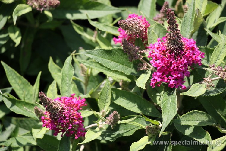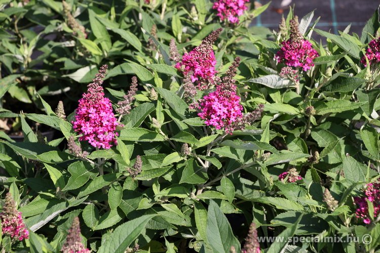 1 m magas, vékony hajtású, széles bokrú cserje. Élénk liláspiros, 15 cm-es bugáit június végétől folyamatosan hozza. Előkertbe, cserjecsoportok elé ültethető alacsony bokor. Tápanyagban gazdag, jó vízellátású talajban díszlik szépen. Tavasszal vágjuk vissza.