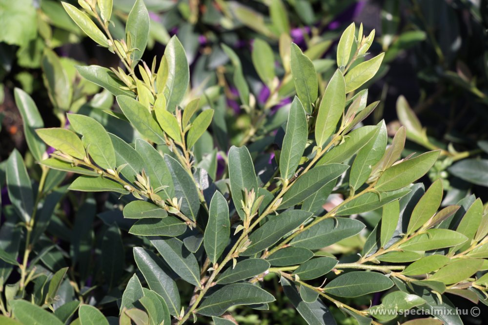 0,9-1,2 m magasan elterülő bokrú, örökzöld levelű talajtakaró. Bőrszerű, fényes sötétzöld levelei váltakozva állnak az ágon, keskeny-hosszúkásak, hegyes csúcsúak, a szélük ép. Tél végén/kora tavasszal nyíló virágai sziromlevél nélküliek, az élénk vörös porzós virágok a levelek hónaljában kis fürtökbe tömörülnek. Ágemeleteket képző, viszonylag kompakt növény. Középerős növekedésű, átlagos igényű, félárnyékba/szűrt napra való. A megfelelő télállósági zónában dekoratív talajtakaró, vagy konténeres terasznövény. Nálunk csak védett helyre javasoljuk ültetni! Jól metszhető.
