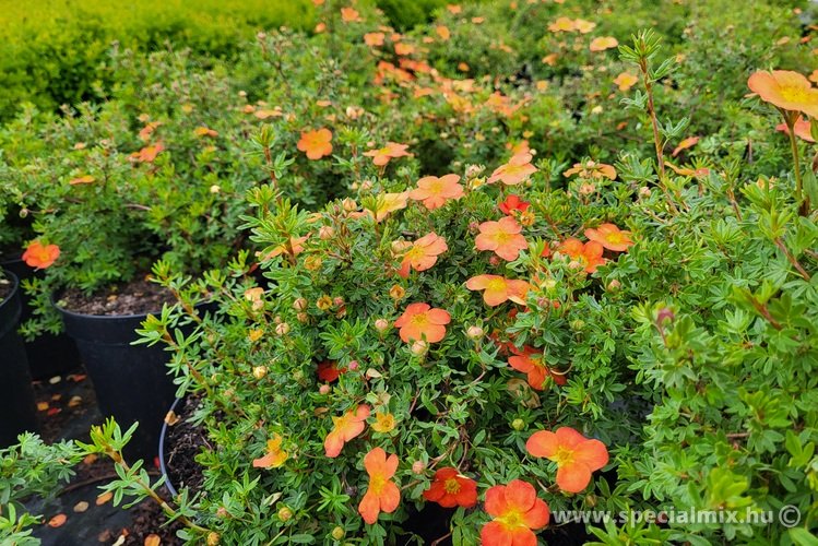 0,4-0,6 m magas, sötét narancssárga színű virágait június elejétől hozza. Szélesen elterülő törpecserje, mely rendszeres öntözés mellett lesz igazán szép.